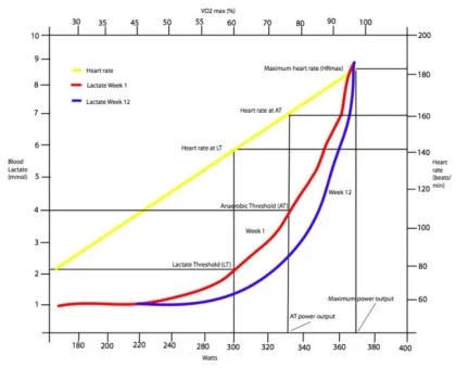2. RE: OBLA. The point Andy makes here is that to call the point that a rider reaches 4.0 mmol/L of lactic acid (AKA OBLA or onset of blood lactate accumulation) in a progressive ramp up test "Anaerobic Threshold", which I said was the same thing as "Lactic Threshold" is somewhat inaccurate. First of all, it is not universally agreed upon that 4.0 is the right number. Many exercise physiologists prefer to look at the graph (power vs. lactate concentration) and identify the point at which the curve changes from a linear rise to an exponential rise. In my experience, this is quite difficult and imprecise. If you have 5 different people picking this point, it's very possible that you might get 5 different answers. The advantage of 4.0 is that it will be picked the same way every time. The reason lactate testing has been so widely used for so long is because there is a very good correlation between OBLA and endurance performance ability. That said, "good correlation" doesn't mean that it works for everyone. When I used to administer a lot of lactate threshold tests, I would often see riders that did a lot of high intensity/short duration training (I.e. hill reps, hard group rides, sprints) but very little moderate intensity/longer duration training (i.e. endurance & tempo rides, 10-20 minute threshold intervals). With many of these athletes, LT/OBLA results would usually predict a much lower threshold wattage than a 95% of a 20 minute TT effort or by looking at Normalized Power for a really hard hour long effort.